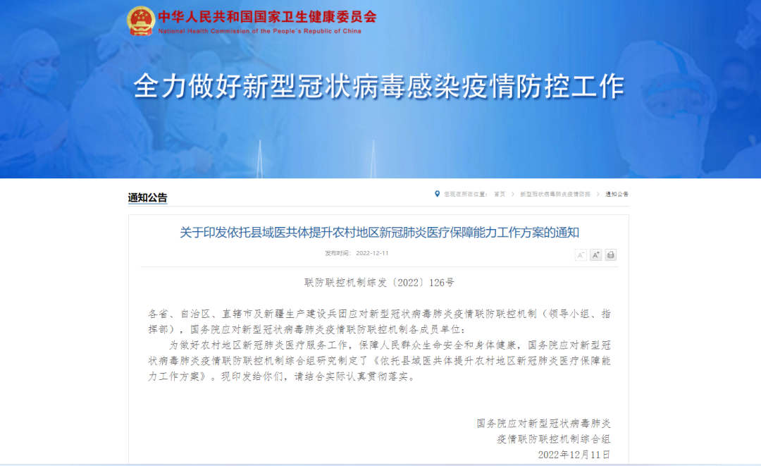 方案總體方針就是要發(fā)揮縣域醫(yī)共體牽頭的縣級醫(yī)院(包括縣人民醫(yī)院、縣中醫(yī)醫(yī)院)在農村地區(qū)醫(yī)療服務體系中的龍頭作用,形成縣、鄉(xiāng)、村三級聯(lián)動的新冠肺炎疫情防控醫(yī)療服務體系。