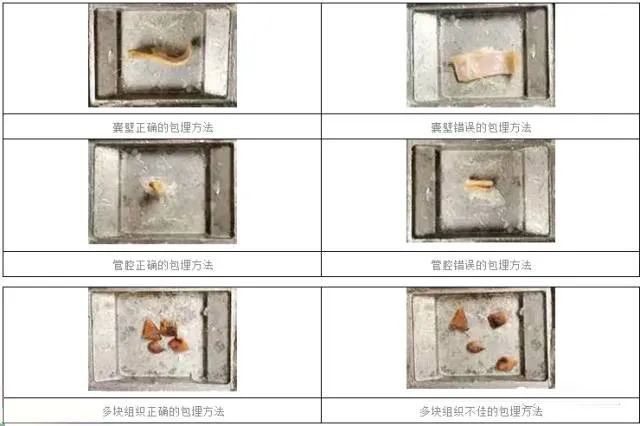 組織的包埋關(guān)系到診斷的準(zhǔn)確性,如囊壁、管腔組織等組織必須豎直包埋。包埋時如果是成堆組織,一般采用組織的最大面包埋,如果組織是平切的,應(yīng)該按照醫(yī)生取材的要求,把朝下的面作為包埋面。小塊多顆組織,應(yīng)盡量放在一起,并保證在一個平面上。對于一些需要切出層次的標(biāo)本如:胃黏膜活檢標(biāo)本,不能按一般的規(guī)律取最大包埋面,應(yīng)采取窄長的面豎包;如果是U,V字形的,也應(yīng)該按U,V字的形狀豎包,這樣才能切到組織的全層。