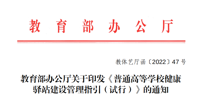 近日,教育部辦公廳印發(fā)了關于《普通高等學校健康驛站建設管理指引(試行)》的通知(以下簡稱《指引》),以此進一步引導規(guī)范高等學校健康驛站建設。