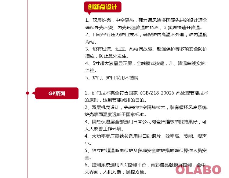 3、安全保障措施:本系列電阻爐設(shè)有過壓、過流、爐體表面過熱保護(hù)保護(hù)開關(guān)。另設(shè)防止供電線路停電恢復(fù)后,在無人值守情況下電阻爐繼續(xù)加熱功能;及開啟爐門后,爐膛停止供電裝置。